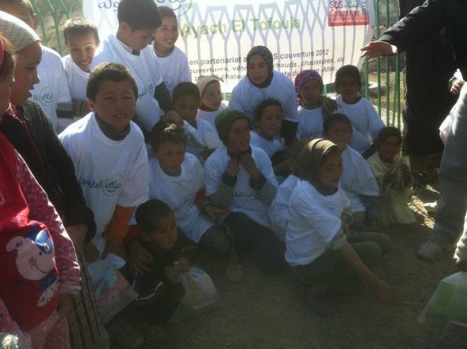 Within the framework of many activities carried out by the team of Ayach Al Tofoula headed by the Pop Star Ramy Ayach, the “SOS Couverture 2012” was launched in order to meet the needs of the children and their families in the Atlas Mountains. After a week of collecting blankets, clothes, medicines and firewood, Ayach Al Tofoula team moved from Rabat to the Atlas Mountains to distribute them to the kids and their families. Despite the long distance and the rugged mountain paths, the team was eager to meet 350 families from four villages in the area in order to draw a smile on their faces. |